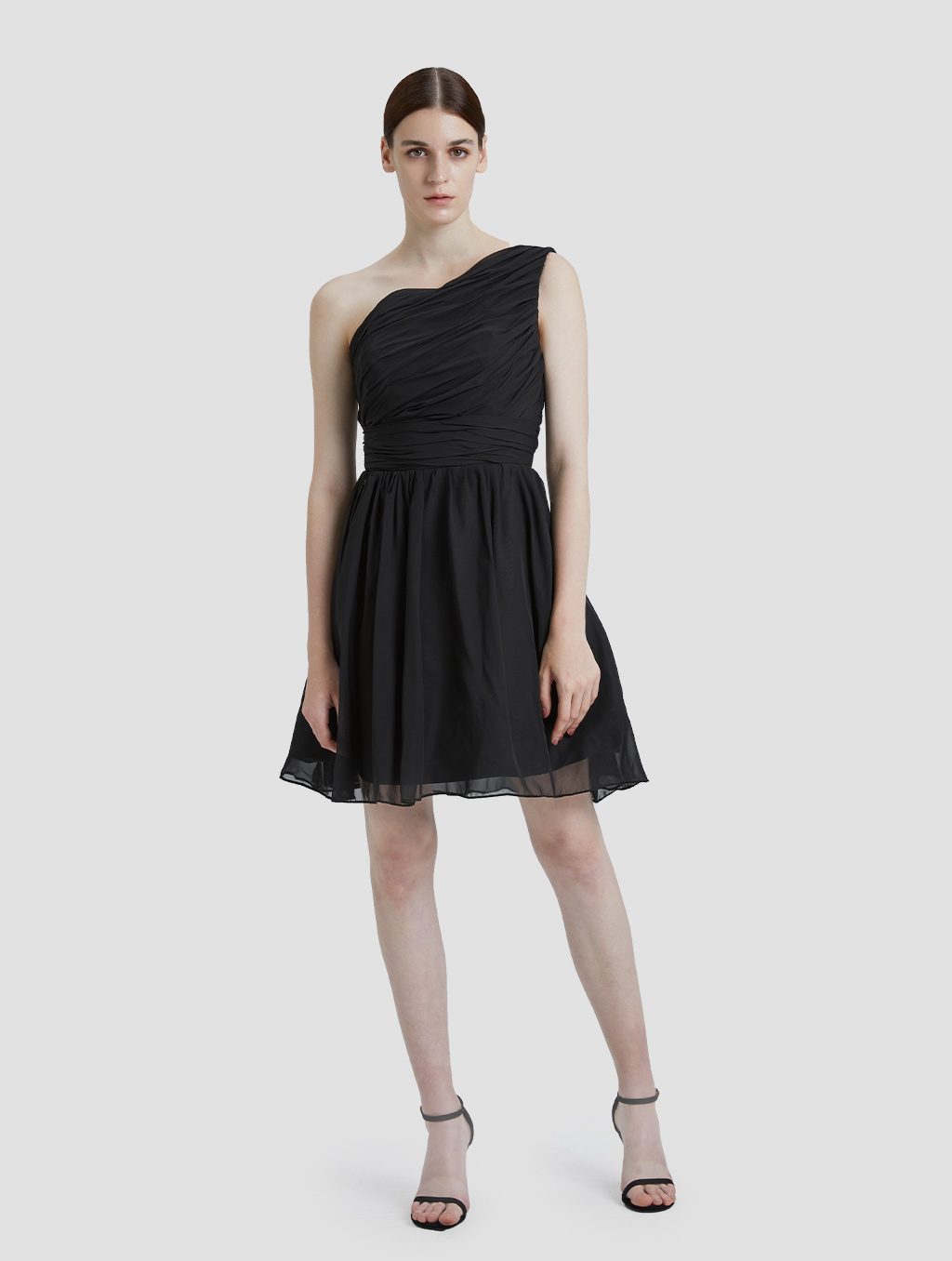 Show off those legs with this trendy look, complete with a draped bodice, wide waistband, and full skirt. The seductive one shoulder adds drama while exposing just the right amount of skin. Accessorize with your favorite earrings and heels.Materials DescriptionGarment CareDry Clean Only / Do Not Tumble Dry / Do Not Bleach / Do Not Machine Wash / Do Not Wring / Do Not Scrub / Steam Generator IronFit Advice